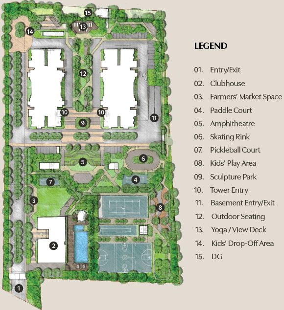 Some of the 30+ premium Amenities at Assetz Trees and Tandem include a fully equipped clubhouse area spanning 3+ acres, landscaped gardens, a gymnasium, a swimming pool zone, recreation rooms, outdoor sports courts, a children’s play area, a party area, and meticulously planned with utmost importance to state-of-the-art 24/7 security.