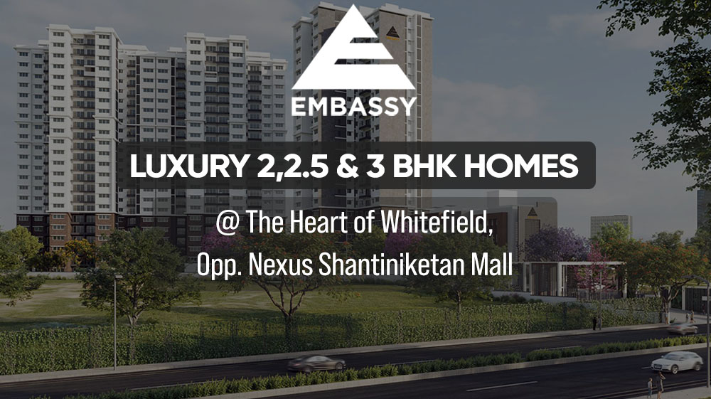Embassy Whitefield Pre Launch Location has excellent connectivity & it is located at the heart of Whitefield bang on ITPL Main Road opposite Nexus Shantiniketan Mall, next to Manipal Hospital, just off Hoodi, Hope Farm Junction, ITPL, and dozens of Major Business hubs.