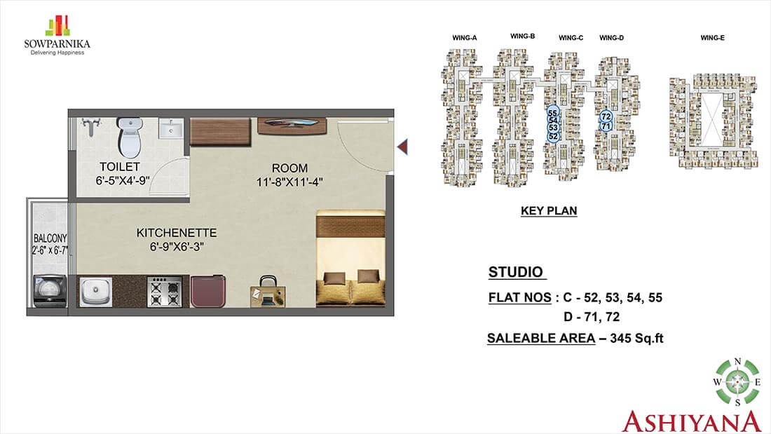 The residential enclave Sowparnika Ashiyana features the very best in Sowparnika’s premium living segment. The project offers spacious Studio, 1, 2, 3 BHK Apartments with luxurious features and optimized design for maximum natural light & ventilation for all units.